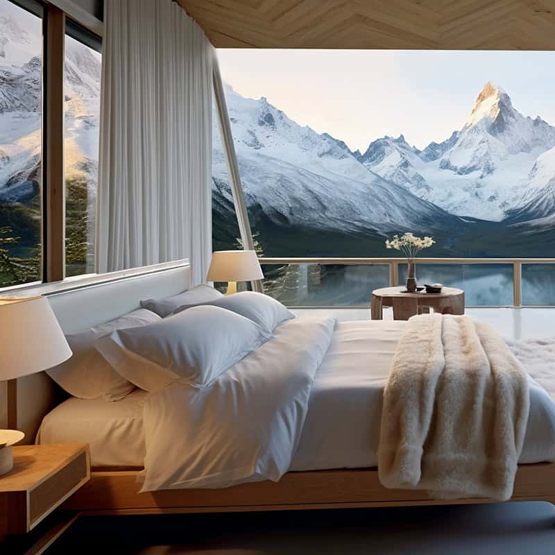 Our Mountain View Room offers breathtaking views of the surrounding peaks, combining comfort with stunning scenery. Enjoy modern amenities, a plush bed, complimentary Wi-Fi, and a private balcony to take in the natural beauty right in front of you with delicious foods.
